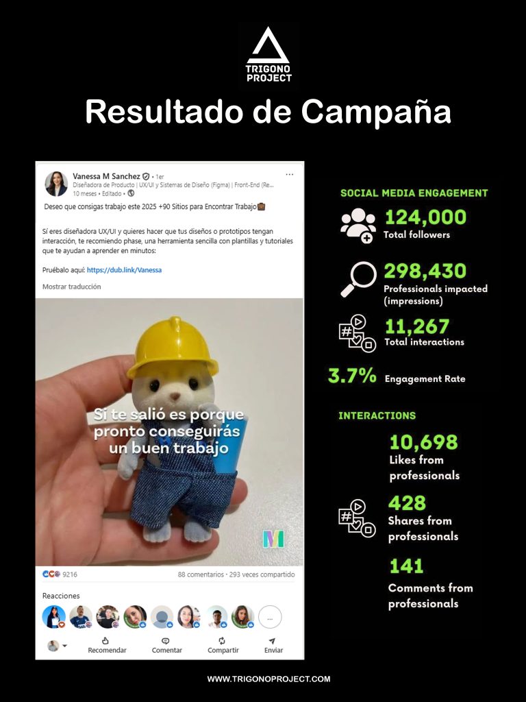 A través del perfil y la comunidad profesional de Vanessa, la campaña logró: