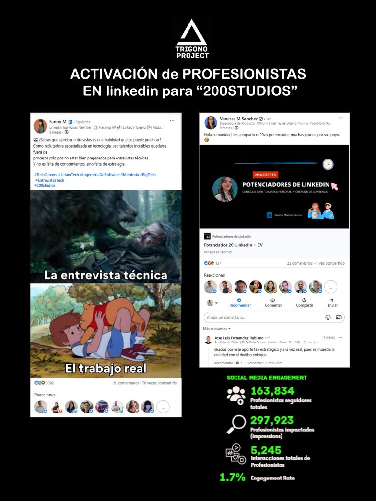 En lugar de lanzar mensajes de marca, activamos voces que ya forman parte de la conversación diaria del ecosistema tech y profesional.
